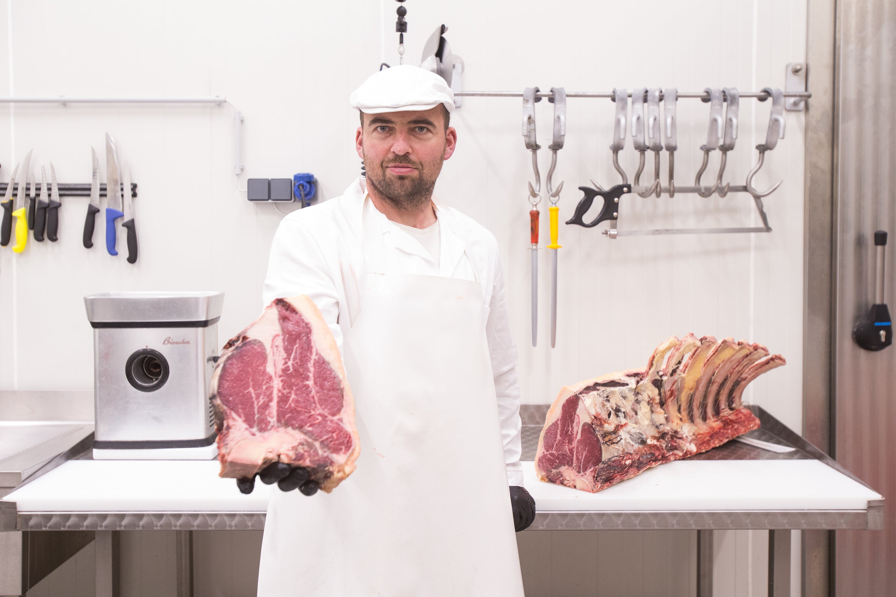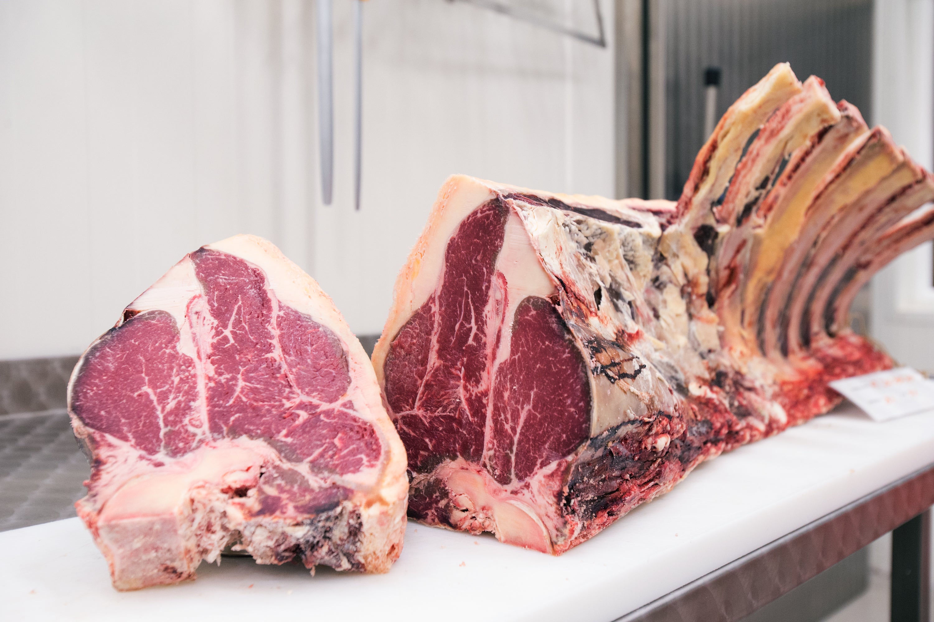 Auserwählte Fleischstücke, durch Trockenreifung am Punkt gereift, zart und marmoriert.